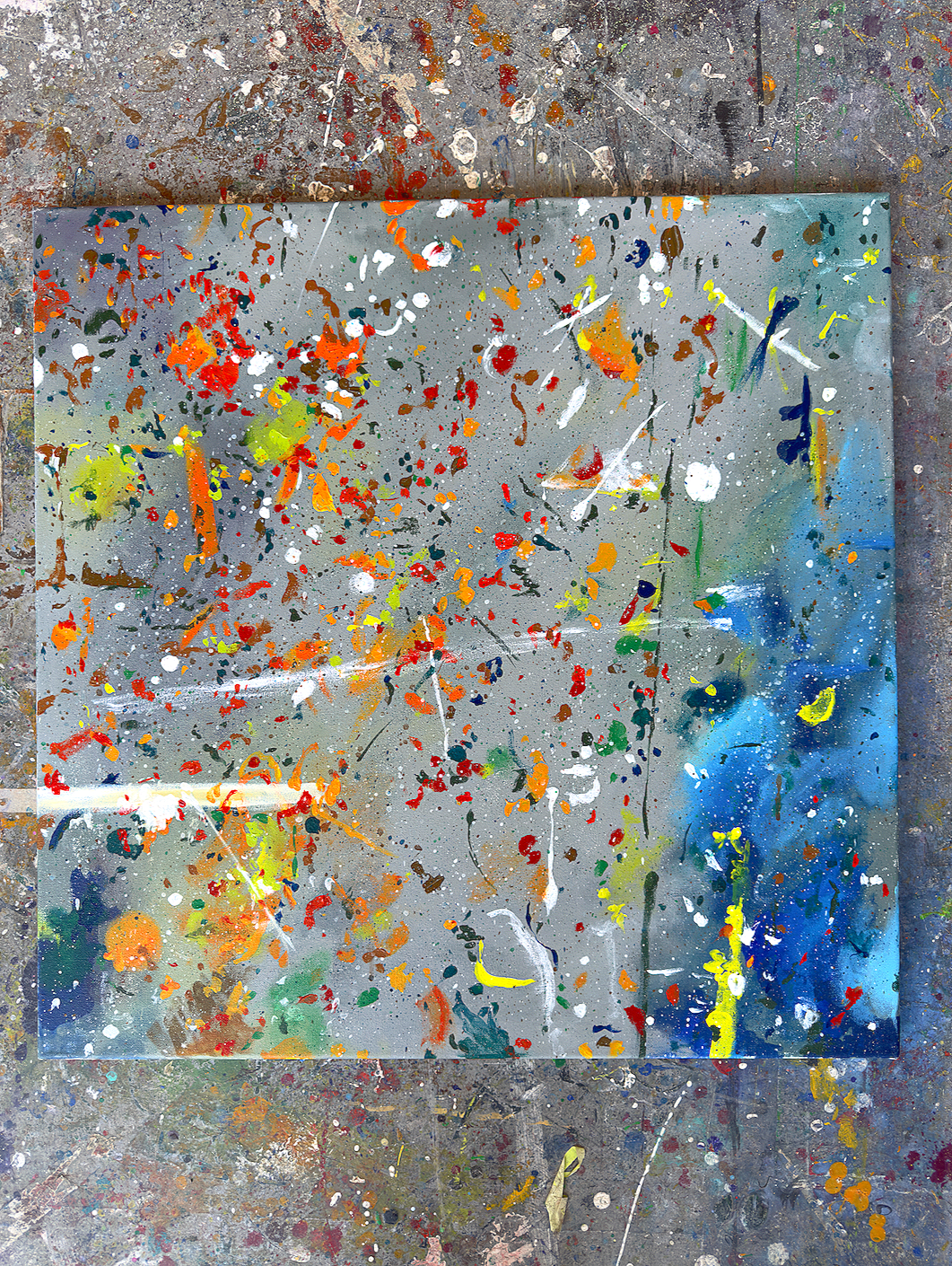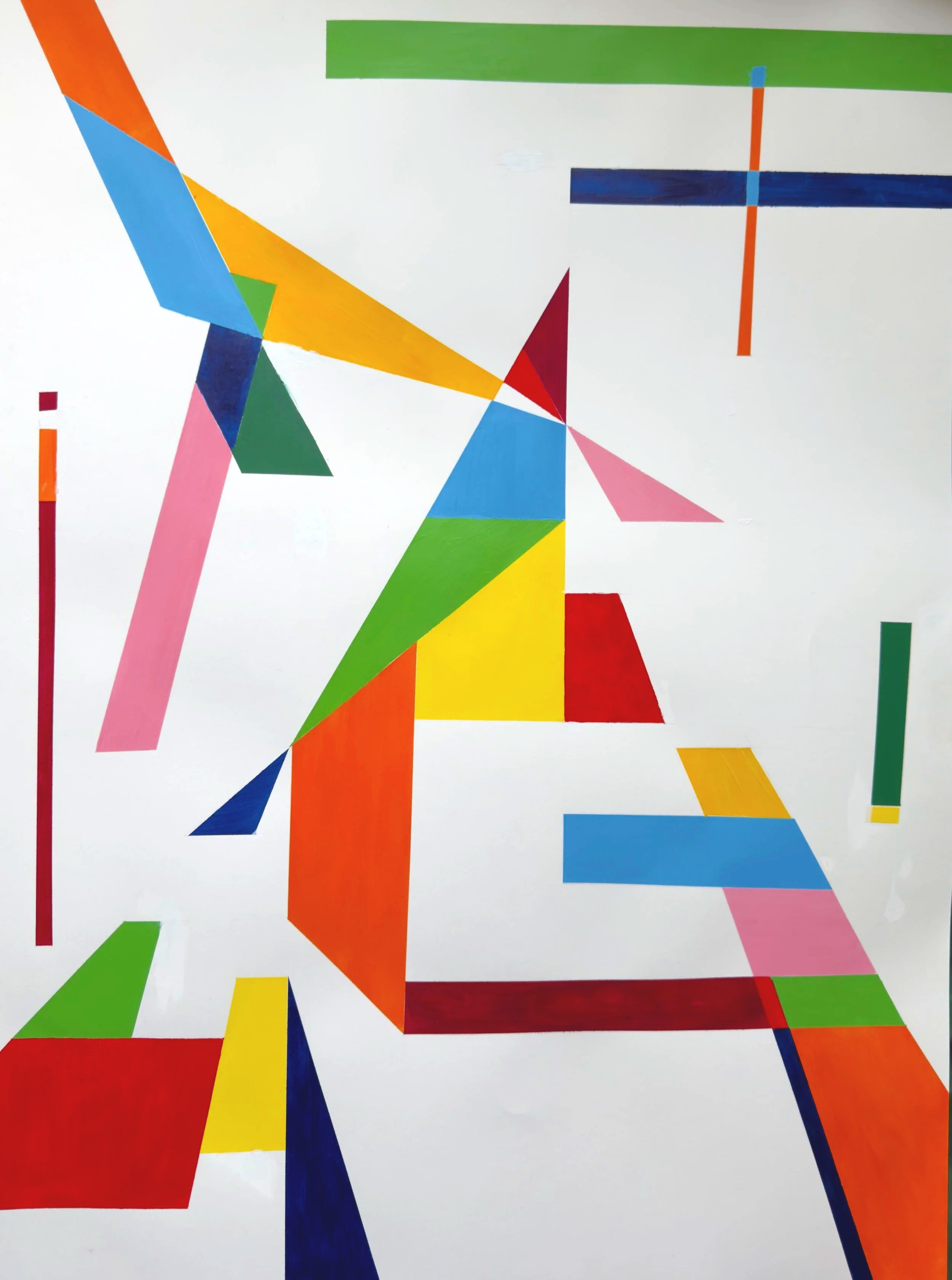 the inspiration from this piece was taken from staring at the floor of a painting studio and loving how organic the relationship between colour and shape was. i sought out a portion of the floor from the studio to recreate in a painting. absolutely loved this process, had so much fun with the work.